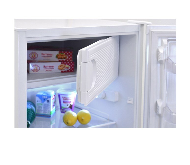 Удобные полки. Небольшая морозильная камера. Цвет белый. |