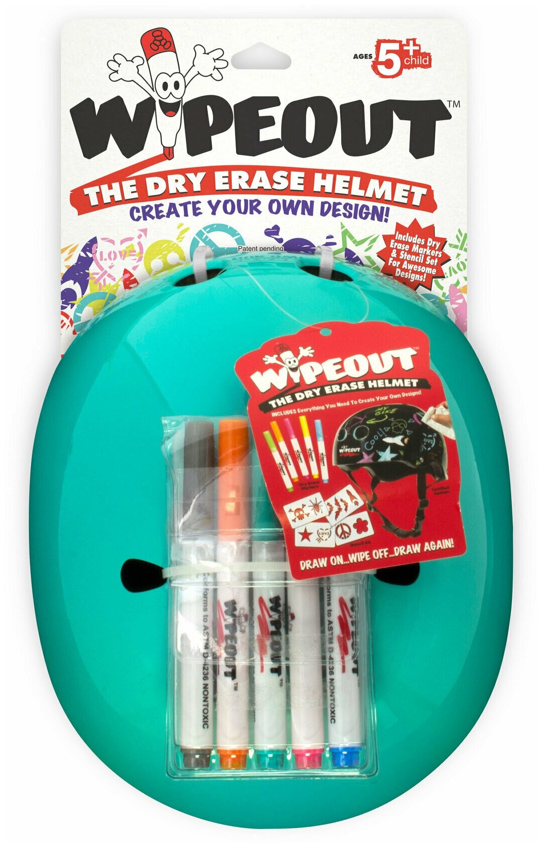 Купить Шлем защитный с фломастерами Wipeout Teal Blue (M 5+, 49-52 см) - бирюзовый