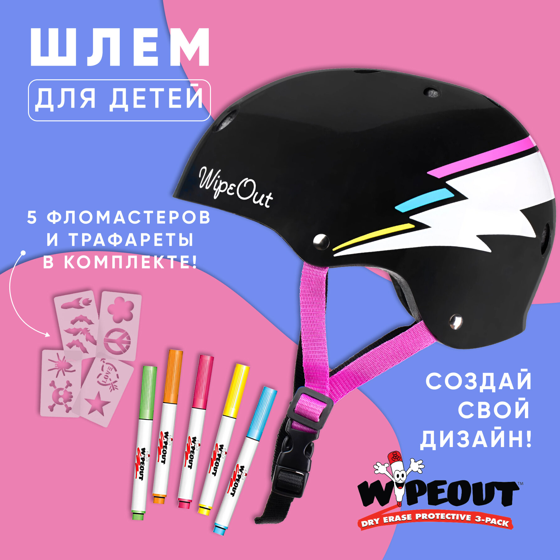 Шлем защитный спортивный WIPEOUT Black Bolt с фломастерами и трафаретами размер M 5+ обхват 49-52 см