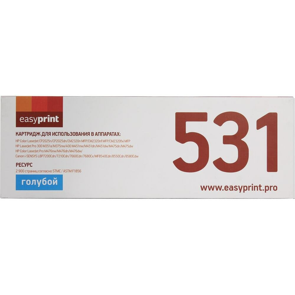 Картридж лазерный EASYPRINT LH-531 U (CC531A/CE411A/CF381A/Canon718C) для принтеров HP / Canon, голубой