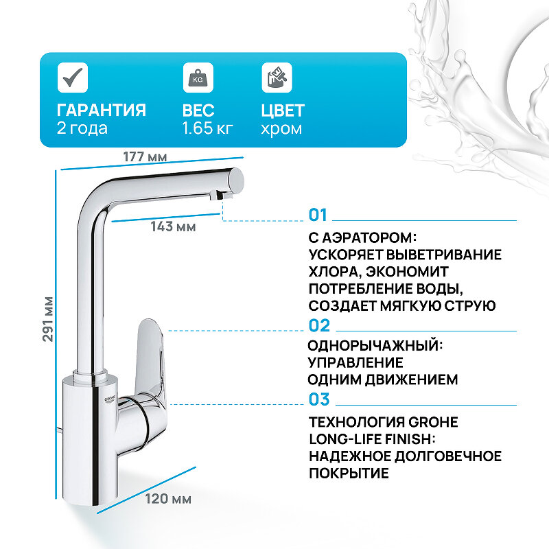 Смеситель однорычажный для раковины 1/2" L-Size GROHE Eurodisc Cosmopolitan 23054003