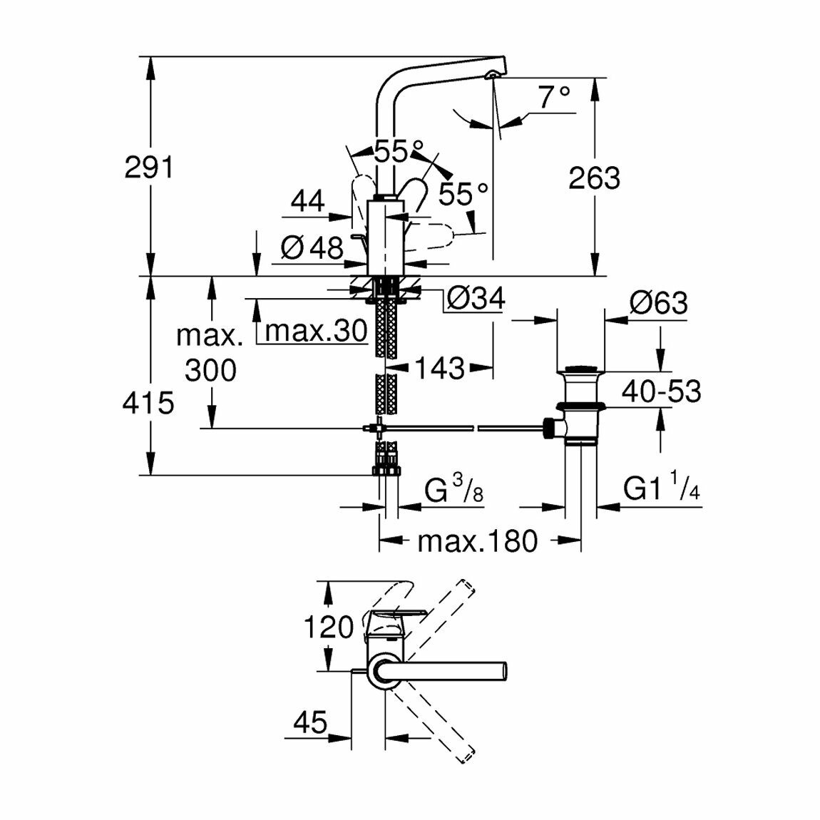 Смеситель для раковины с донным клапаном Grohe Eurodisc Cosmopolitan 23054003