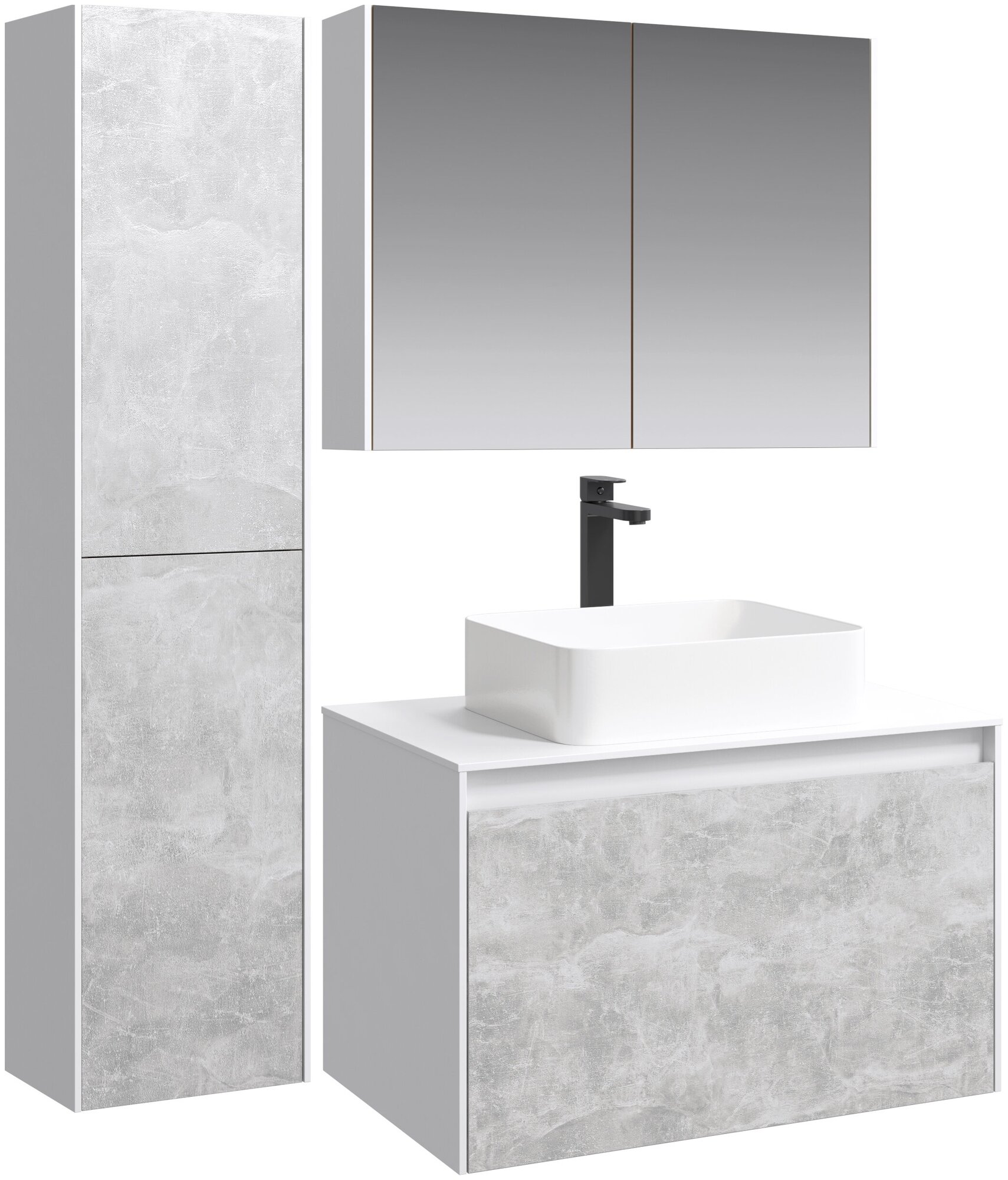 Тумба с раковиной Aqwella 5 stars Mobi 80 белая, бетон светлый