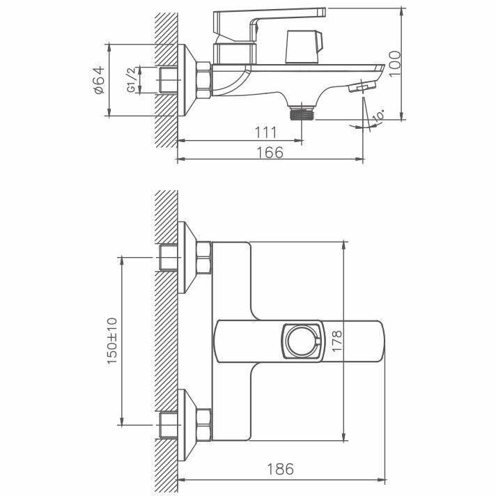 Смеситель для ванны, хром HB60176