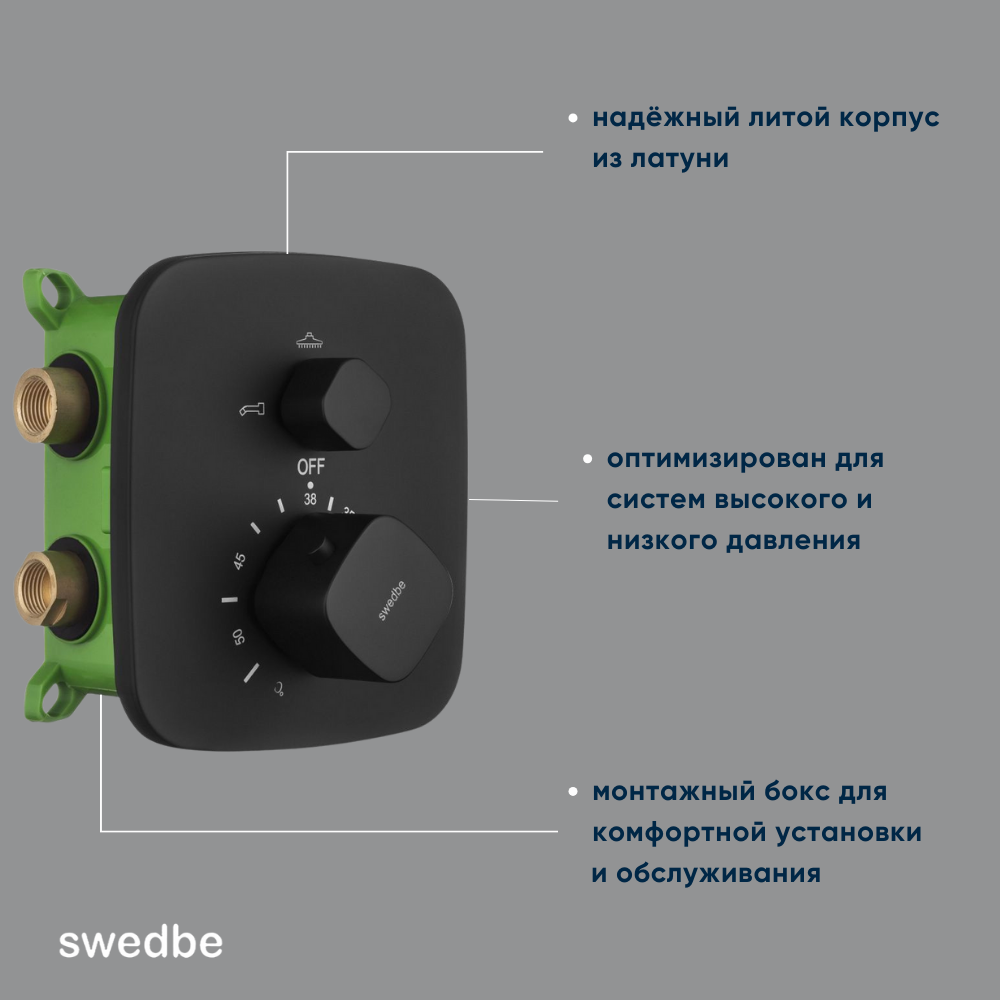 Встраиваемый термостатический смеситель подключение на 3 выхода в монтажном боксе Swedbe Platta интересное: