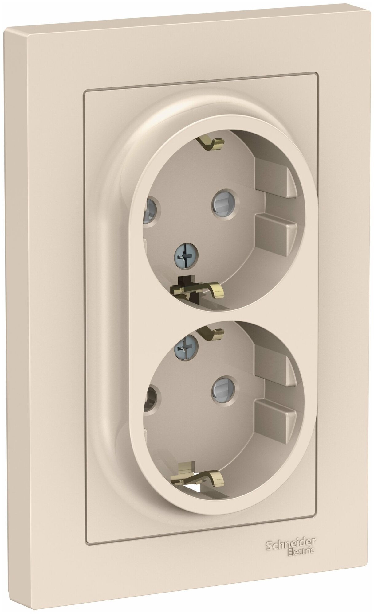 Купить Розетка двойная бежевая, с заземлением, со шторками,16А, в сборе, Schneider Electric AtlasDesign (комплект 2шт)