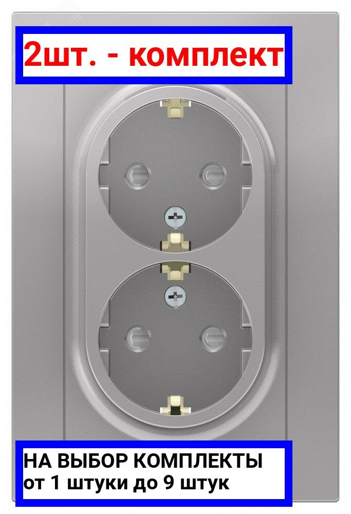 Розетка двойная алюминий, с заземлением, со шторками,16А, в сборе, Schneider Electric AtlasDesign (комплект 2шт)