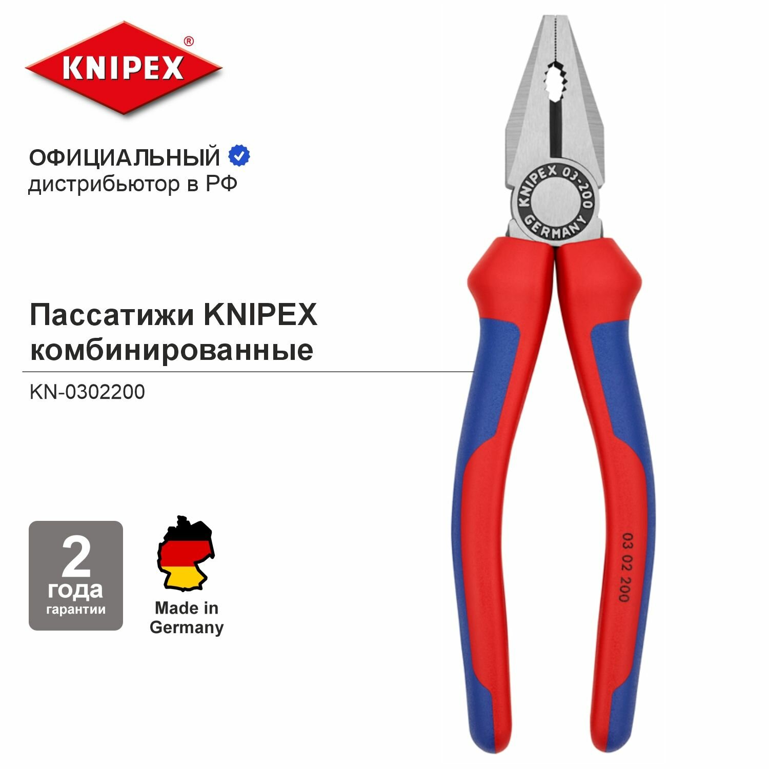 Плоскогубцы комбинированные KNIPEX KN-0302200