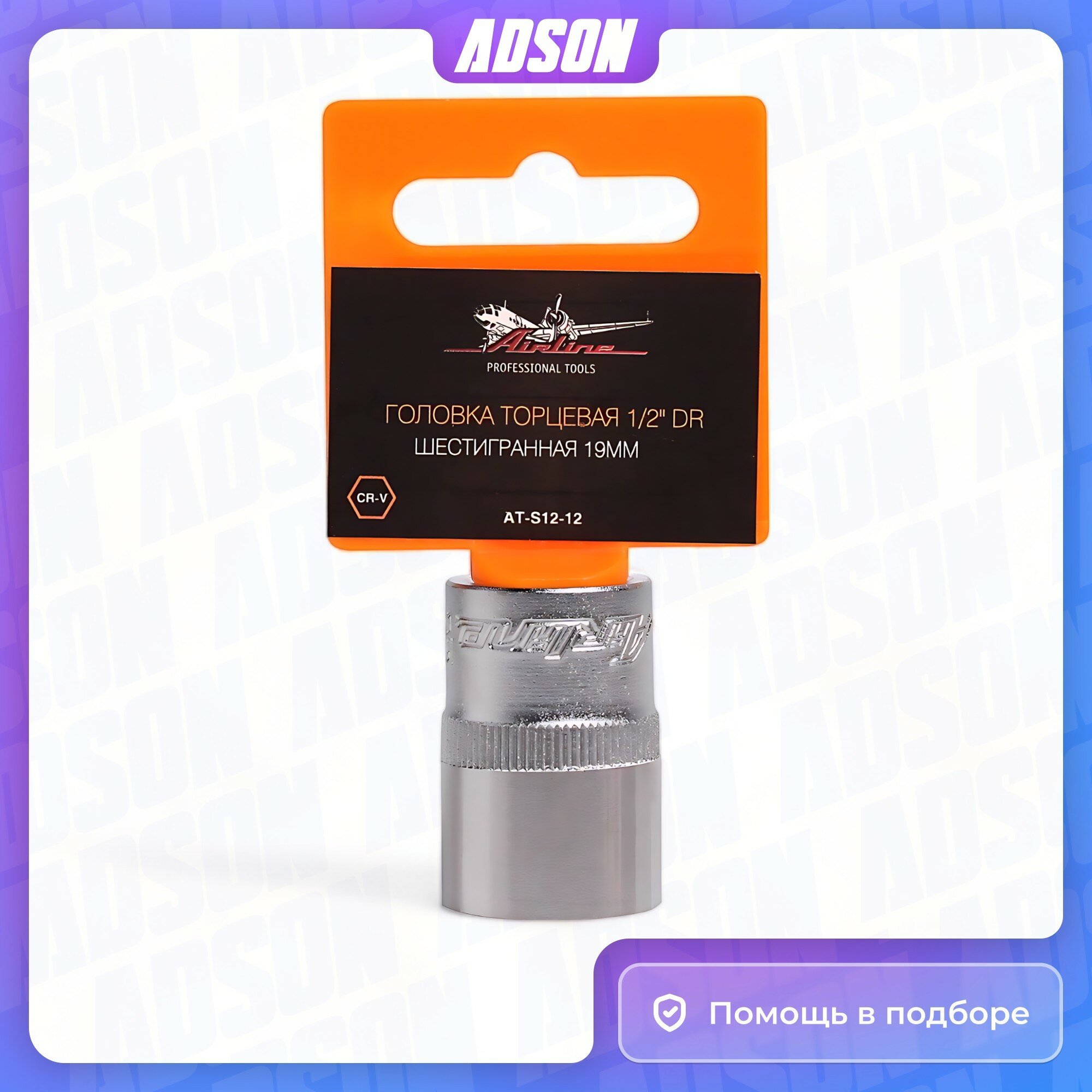 Головка торцевая 1/2" DR шестигранная 19мм пласт. подвес AT-S12-12 AIRLINE