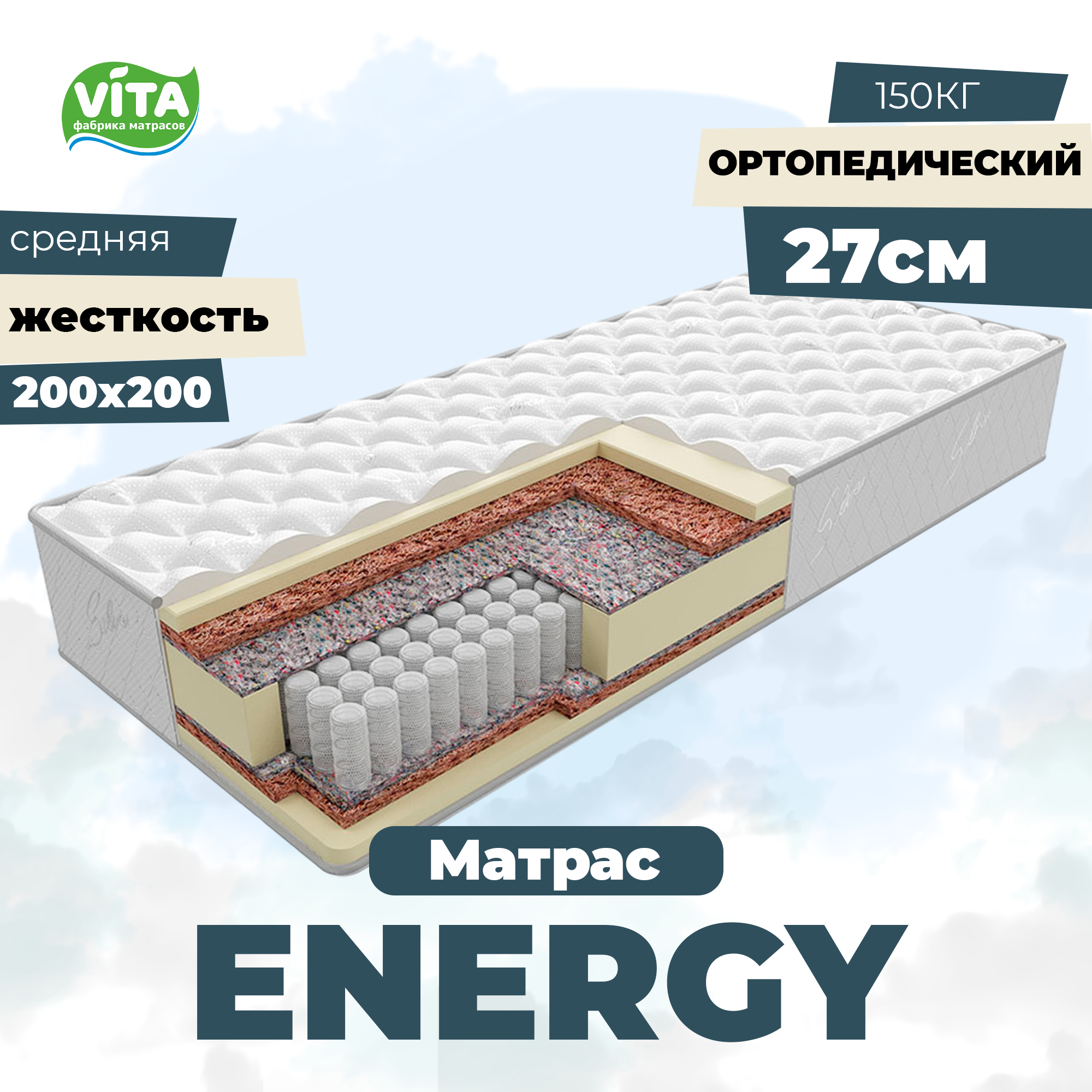 Матрас ортопедический VITA Energy (140x200), независимые пружины PS 500