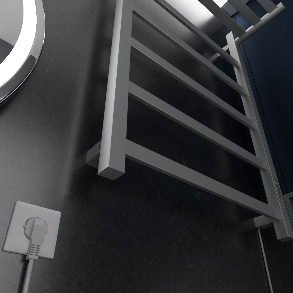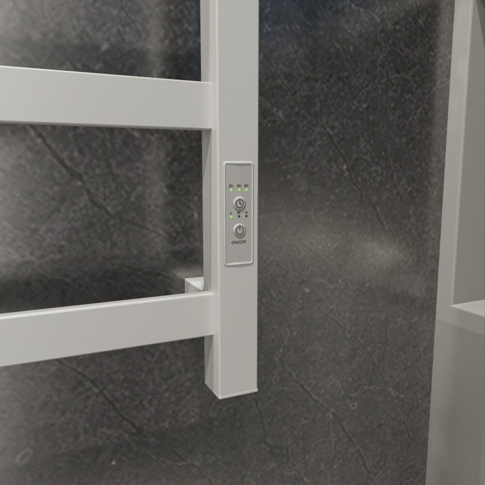 Полотенцесушитель Inaro Р120*6*018 (СНШ, Белый RAL 9016 (мат) , 3 секции по 3 вставки, Под скрытый монтаж. С таймером Ferrum, 8 крючков, Кабель с вилкой белый 90 см ; 8 крючков: 4 сверху, 4 посередине. Правое