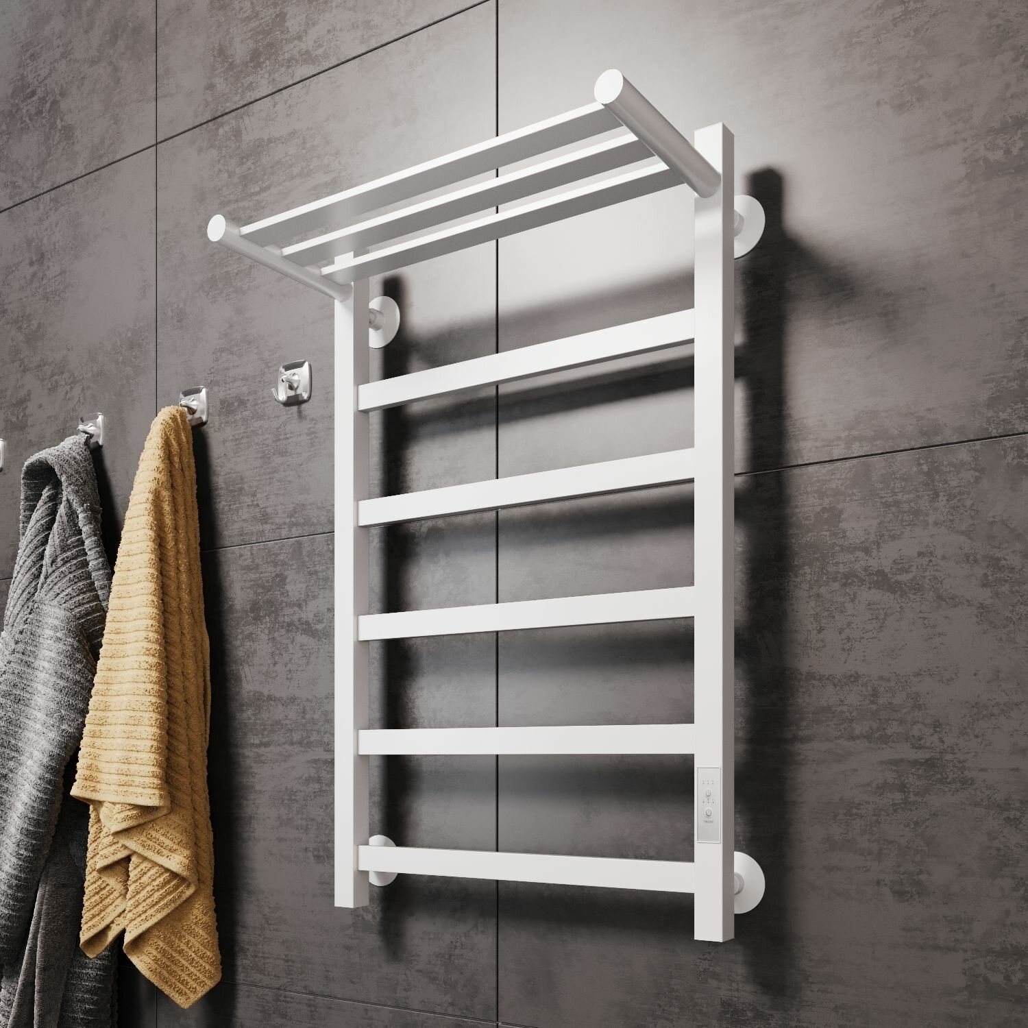 Полотенцесушитель электрический ВИД 81-10 профильный с полкой 810х500, скр. монтаж, СНШ, белый матовый(RAL 9016), (Ferrum, равномерные перкаладины), Маргроид