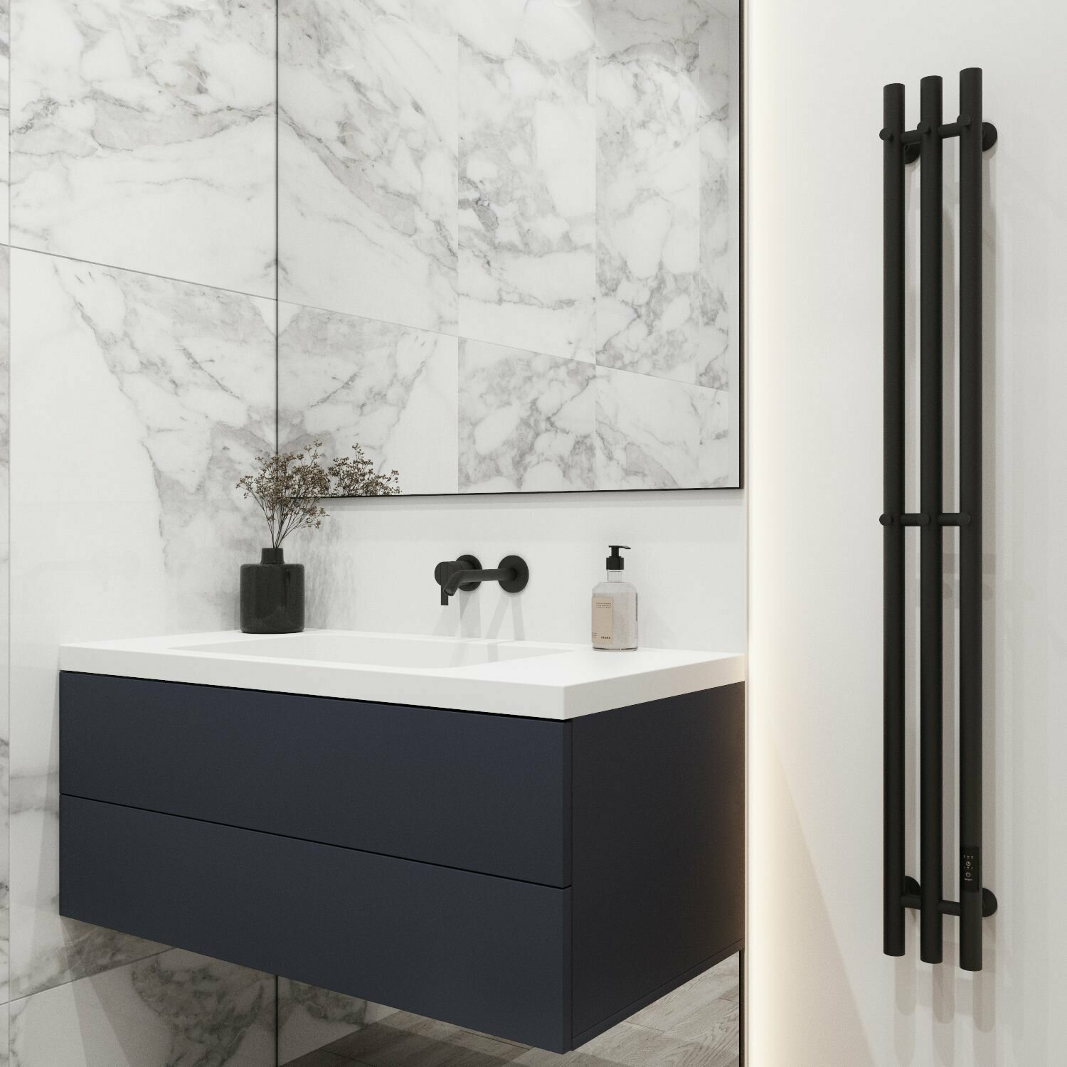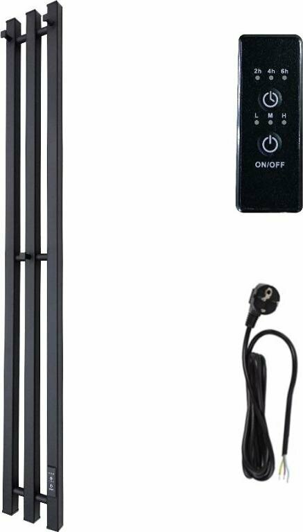 Полотенцесушитель электрический Маргроид 1200мм 150мм черный матовый скрытый монтаж/шнур с вилкой, с таймером, 3 крючка, правое подключение