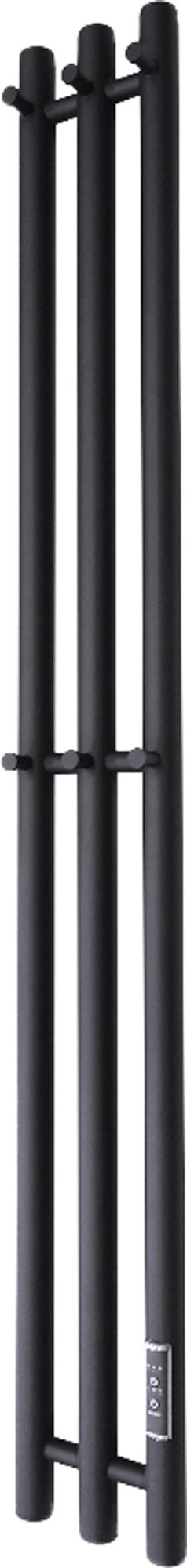 Полотенцесушитель электрический 1200мм 150мм черный матовый с таймером, 3 крючка, правое подключение
