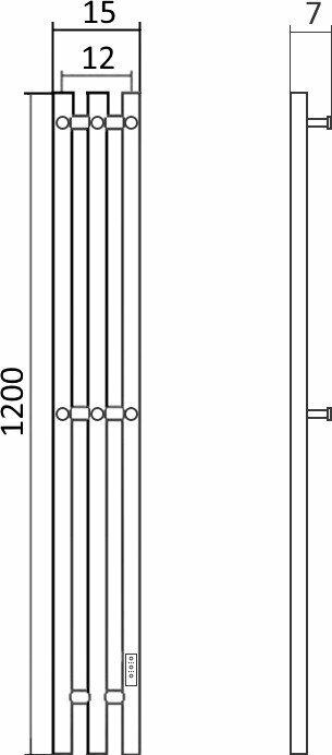 Полотенцесушитель электрический INARO 120х12 прав, скр.монт, черн мат(RAL 9005), (Ferrum), Маргроид