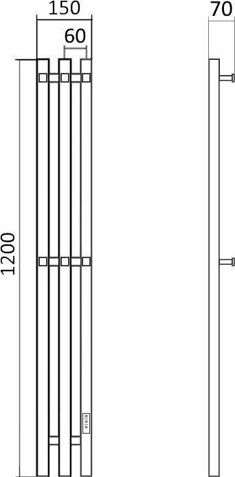 Полотенцесушитель электрический INARO 120х12 прав, скр.монт, черн мат(RAL 9005), (Ferrum), Маргроид