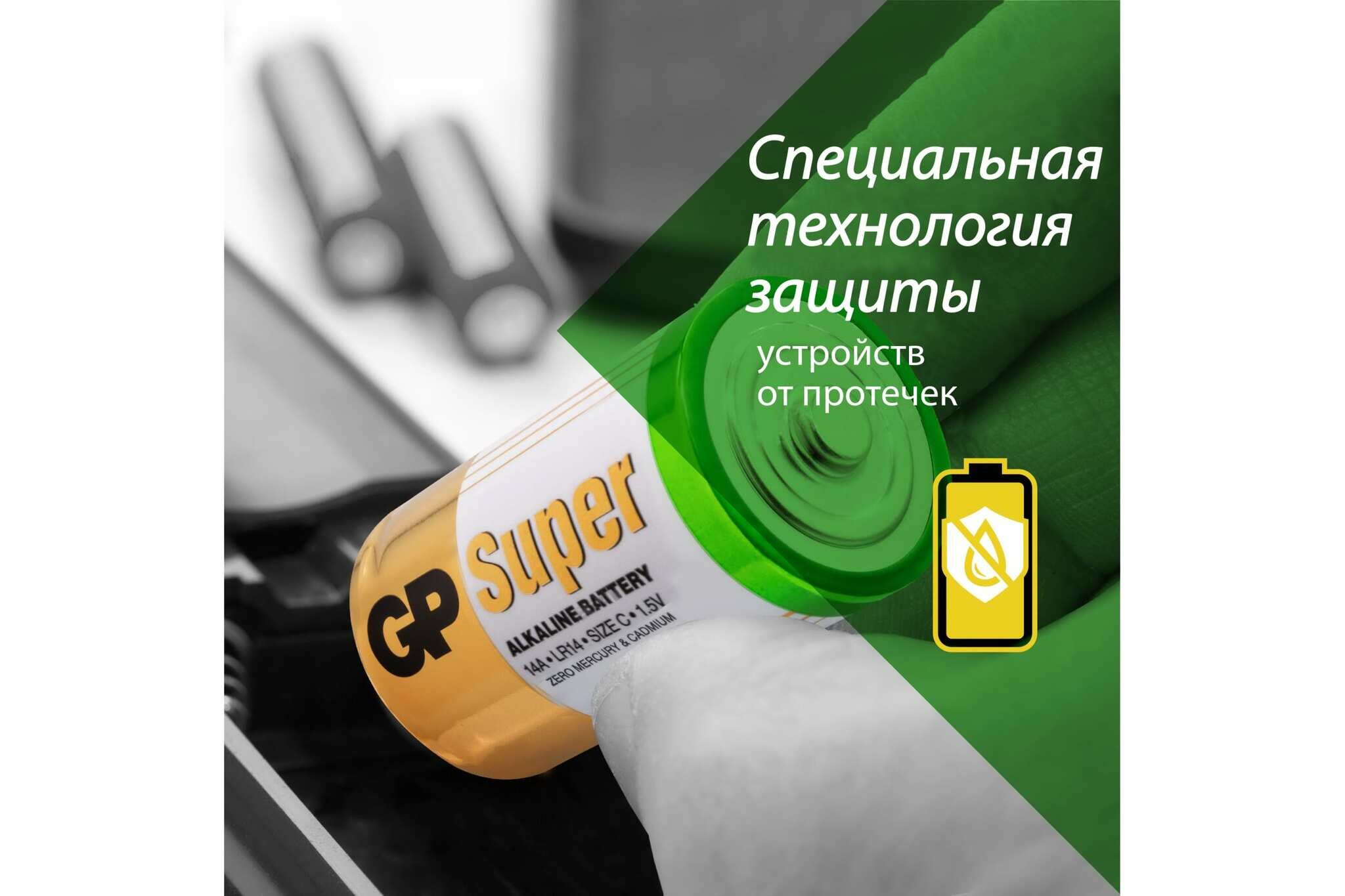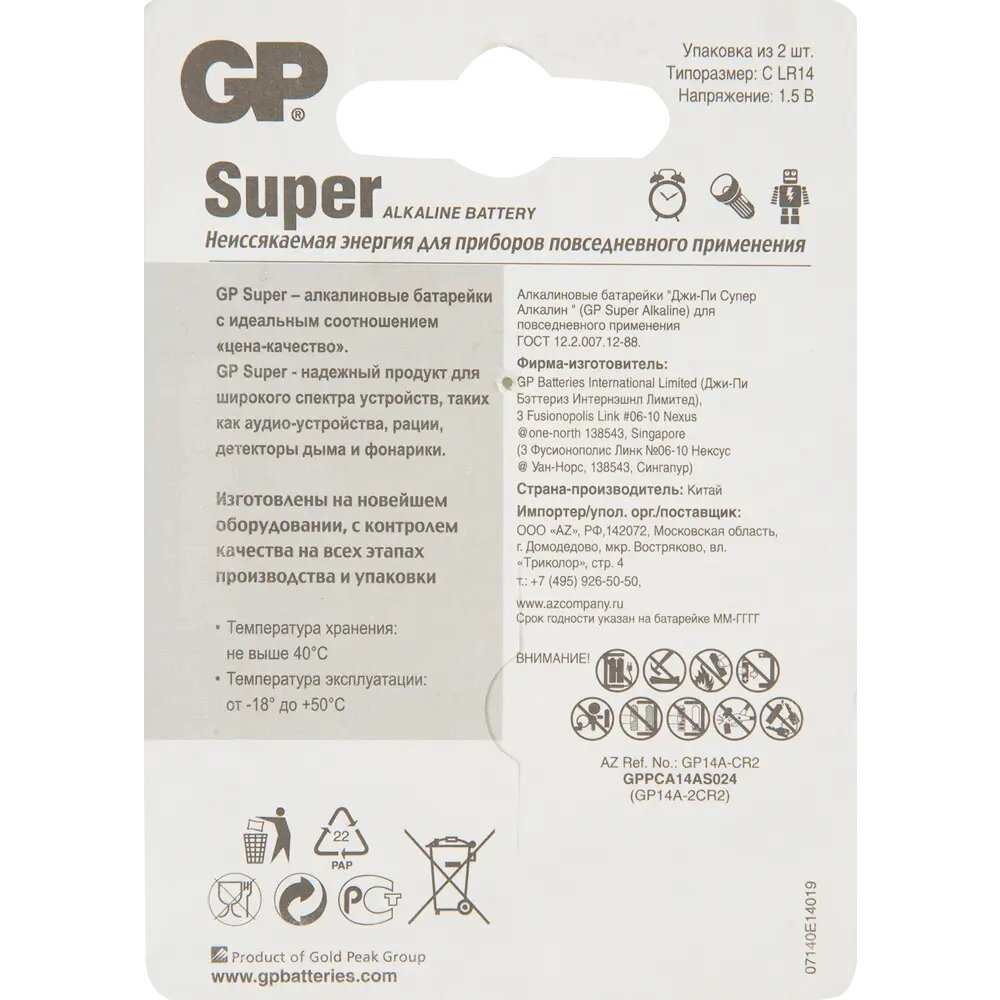 Батарейки GP Super, С (LR14, 14А), алкалиновые, комплект 2 шт., в блистере, 14A-2CR2, 1 шт.