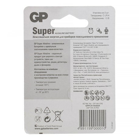 Батарейки GP C/LR14 Super 2 шт. интересное: