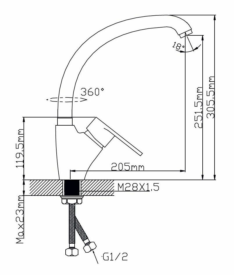 | Тип излива | поворотный |