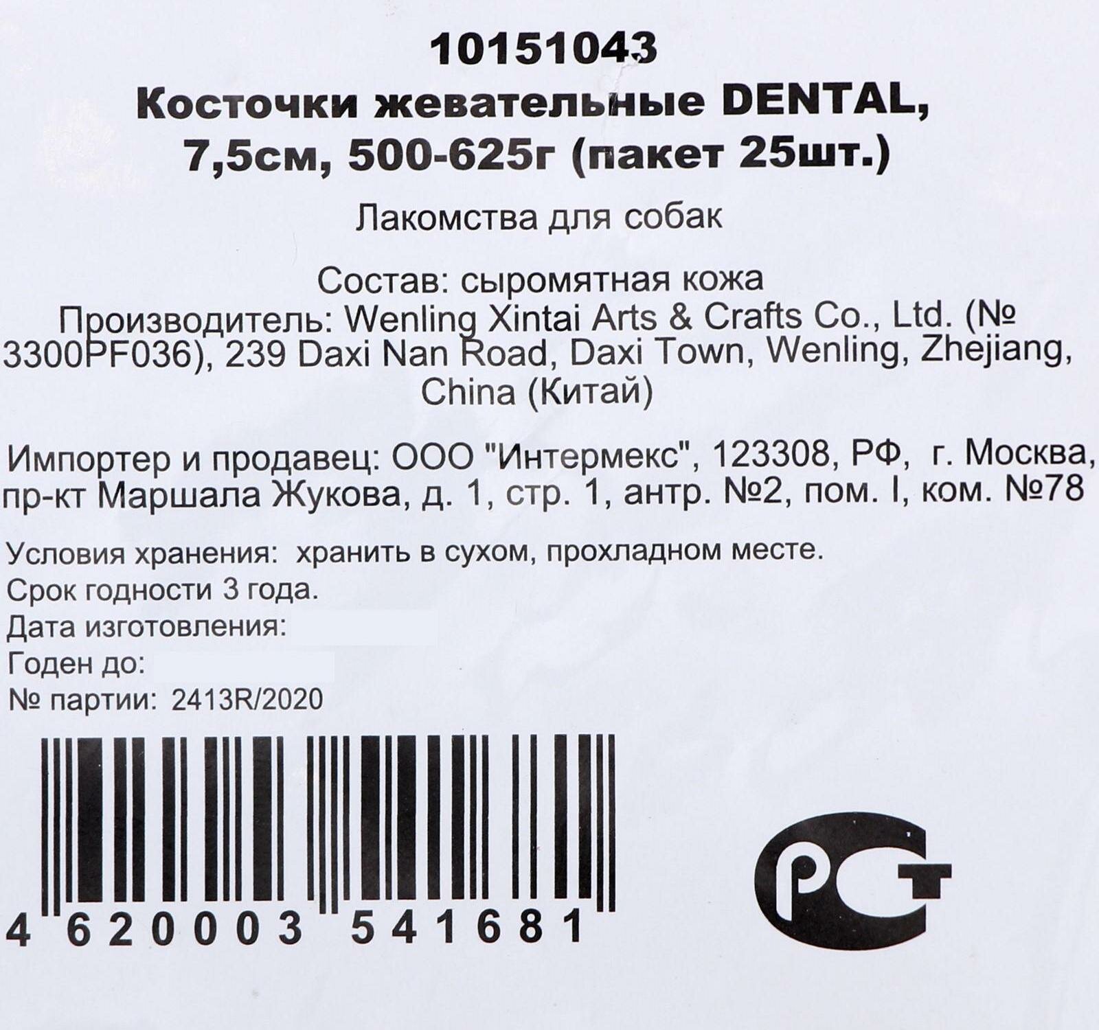 Купить Косточки DENTAL жевательные, 7,5см (пакет 25шт.)
