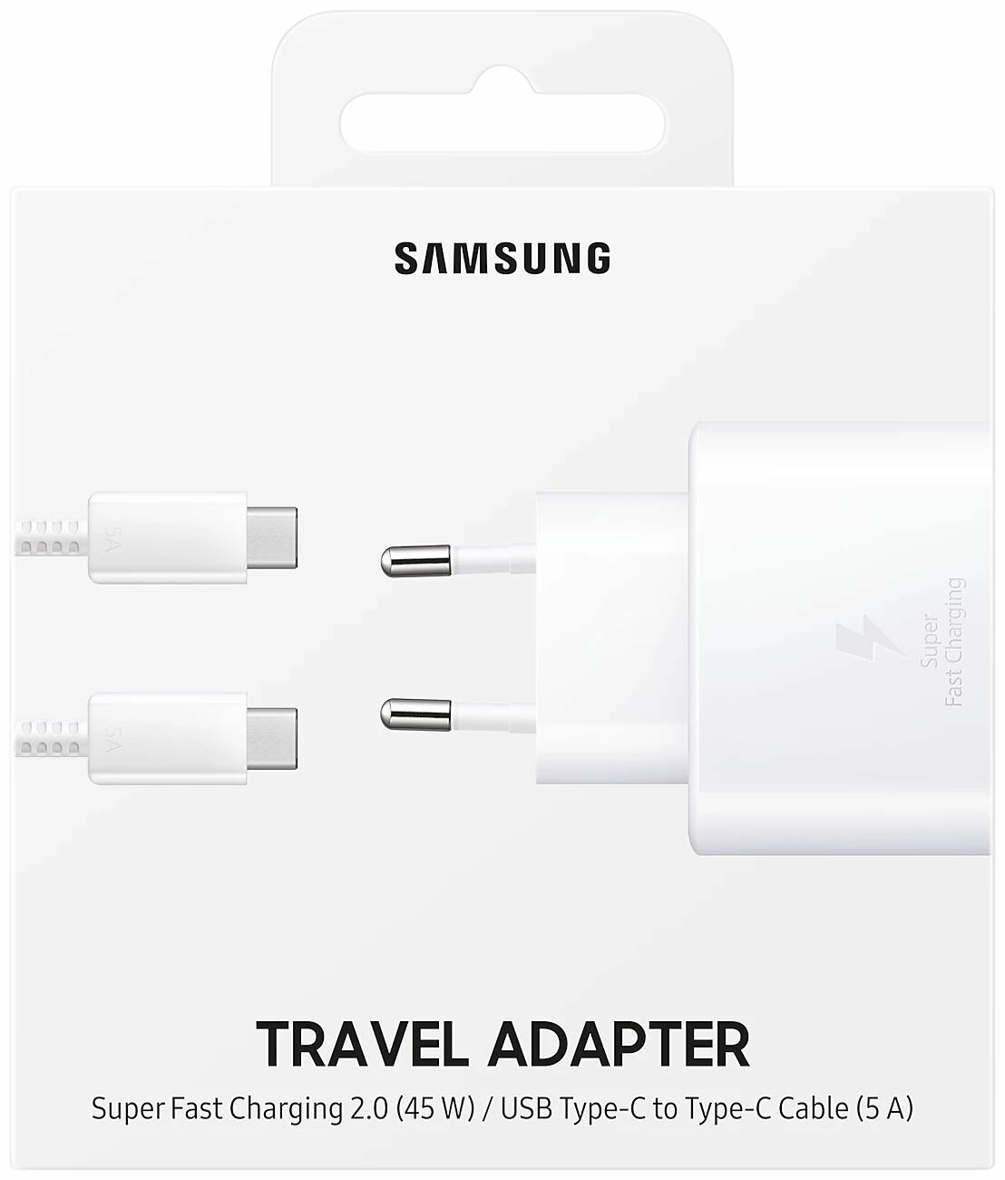 Сетевое зарядное устройство Samsung EP-TA845 + кабель USB Type-C, 45 Вт, белый