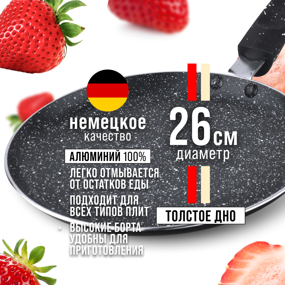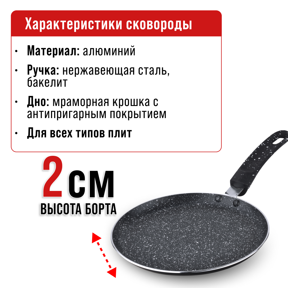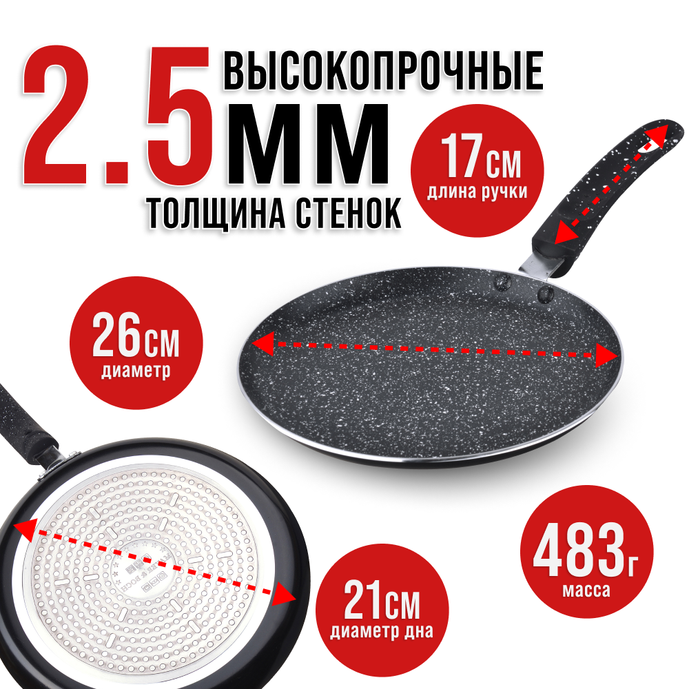 Сковорода для блинов Mayer&Boch / Майер энд Бош МВ25691 антипригарное мраморное покрытие, алюминий, диаметр 26см / сковородка блинная / блинница для всех видов плит