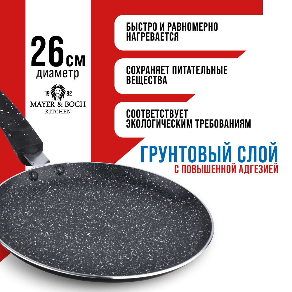 Блинница MAYER & BOCH 25691, 26 см, с мраморным антипригарным покрытием