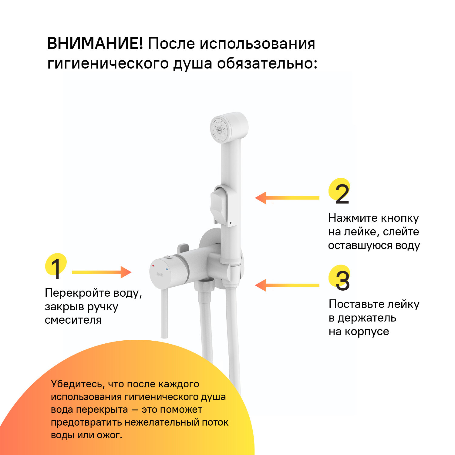 Смеситель для гигиенического душа с держателем для лейки и крючком для полотенца IDDIS Spring белый матовый 003WTR0i08