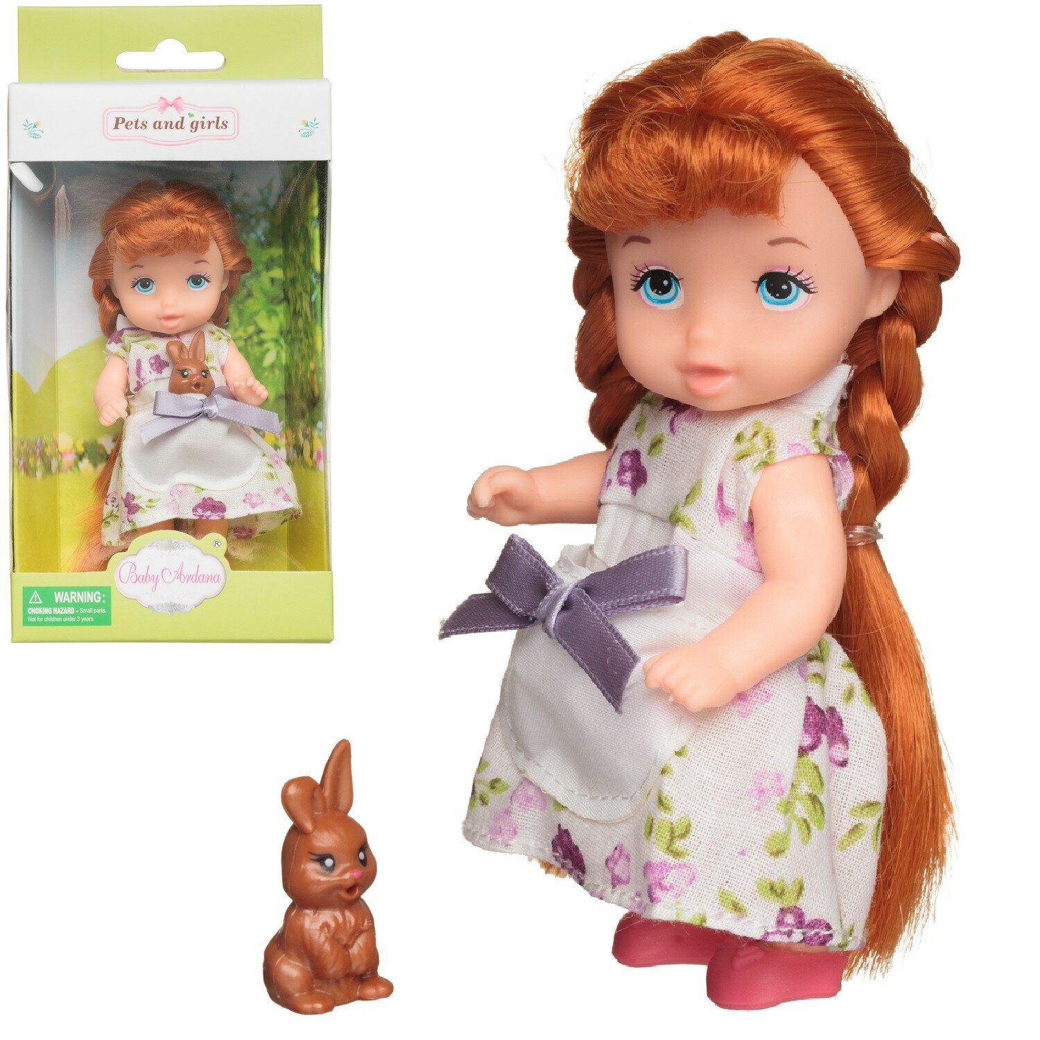 Кукла-мини Baby Ardana серия Питомец шатенка с косами с коричневым кроликом 11 см A593/коричневыйкролик