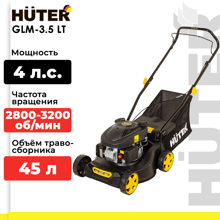 Купить Газонокосилка бензиновая HUTER GLM-3.5 LT (4 л.с., 2800-3200 об/мин, 45 л, от 30 мм до 70 мм, ширина - 420 мм)