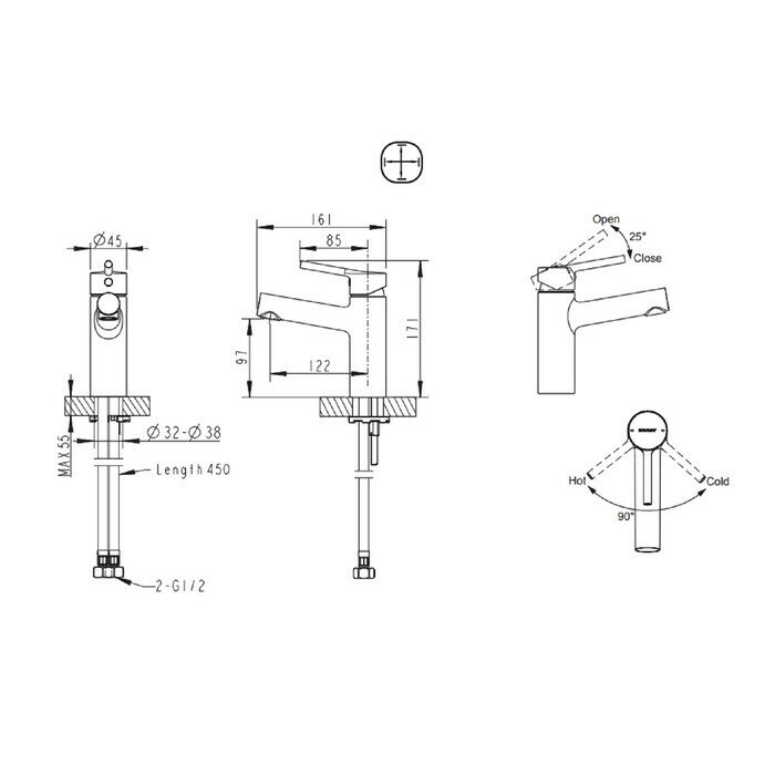 | Угол поворота рукоятки гориз. | 90 градусов |
