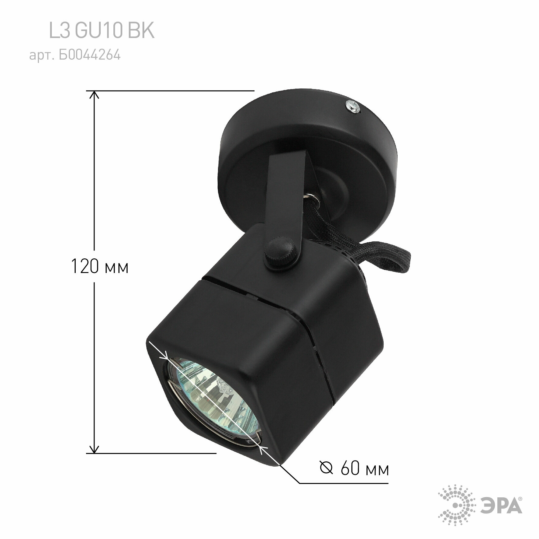 Светиьник наклоный спот GU10 60х95х120 черный BK 1058 ЭРА