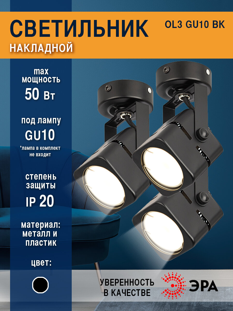 Светильник накладной ЭРА OL3 GU10 BK Подсветка , черный (50/900)