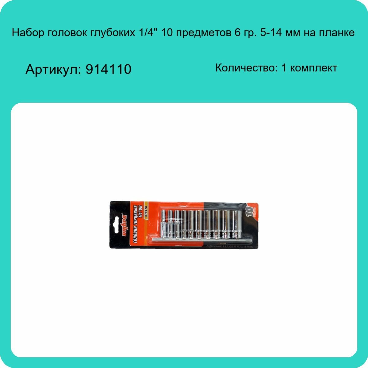 Набор головок торцевых глубоких 1/4"DR на держателе, 5-14 мм, 10 предметов 914110