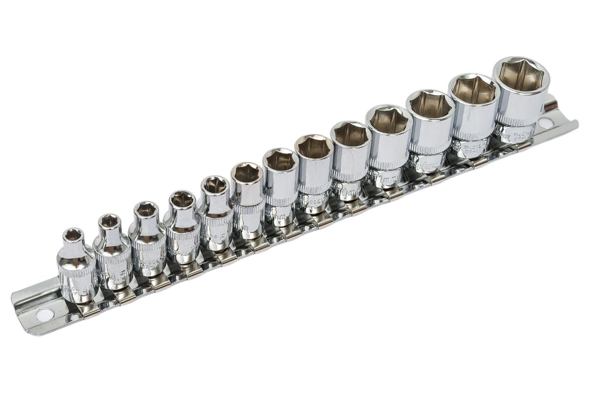 914013 Набор торцевых головок на держателе-рельс 1/4"DR 4-14 мм., 13 предметов