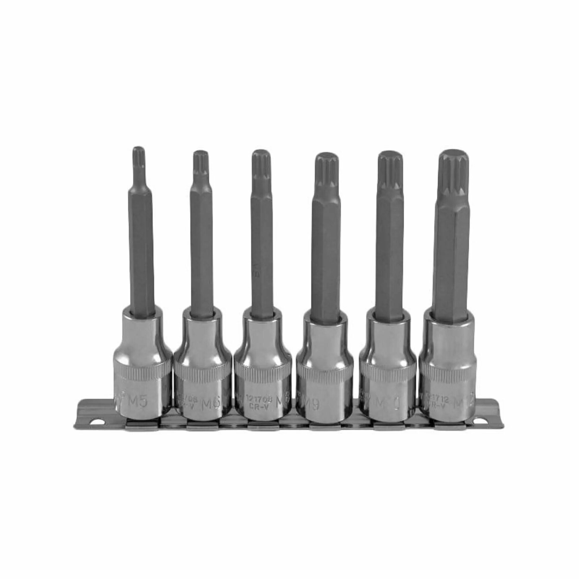Ombra 921706 Набор насадок торцевых 1/2"DR с вставками-битами SPLINE на держателе, M5-M12, 100 мм, 6 предметов