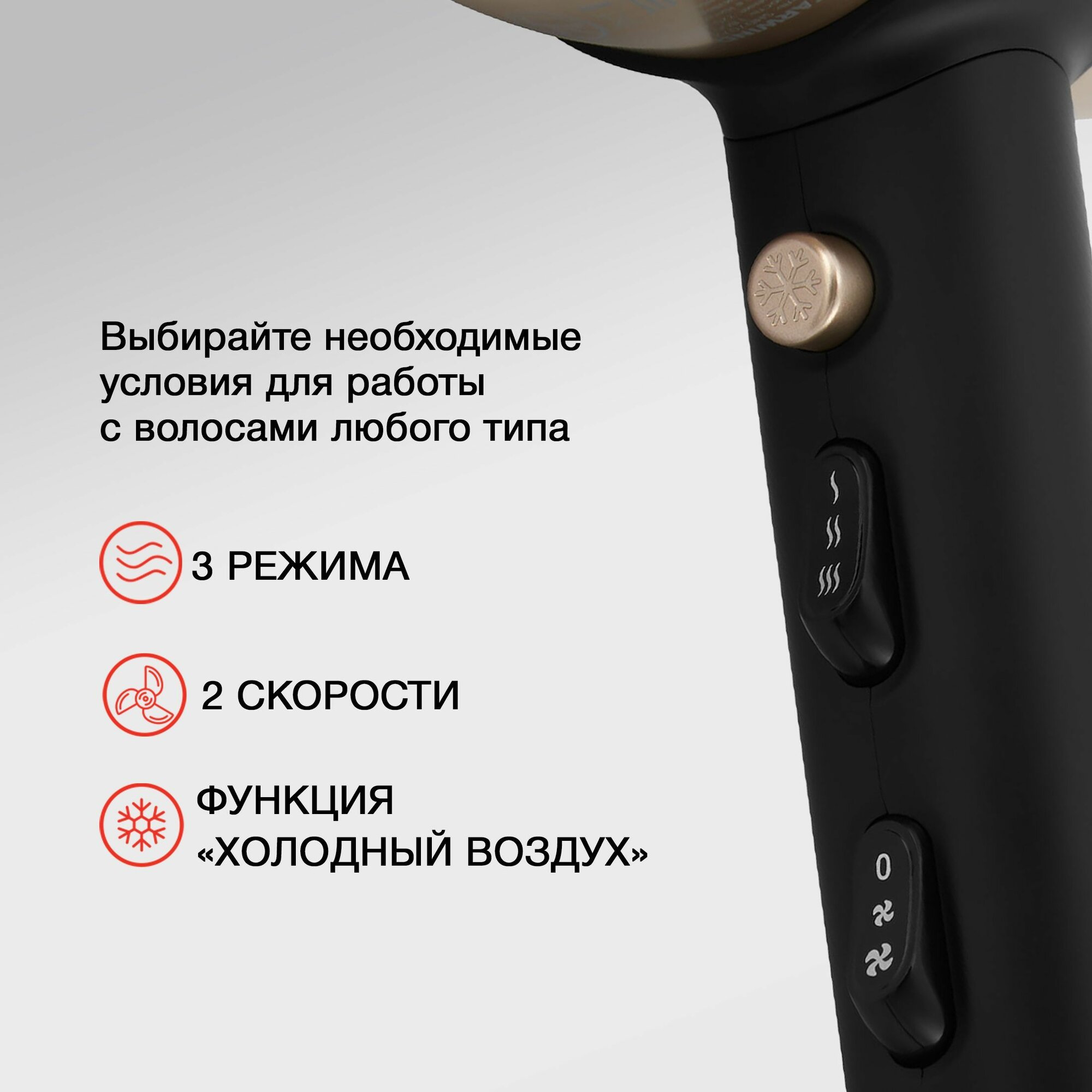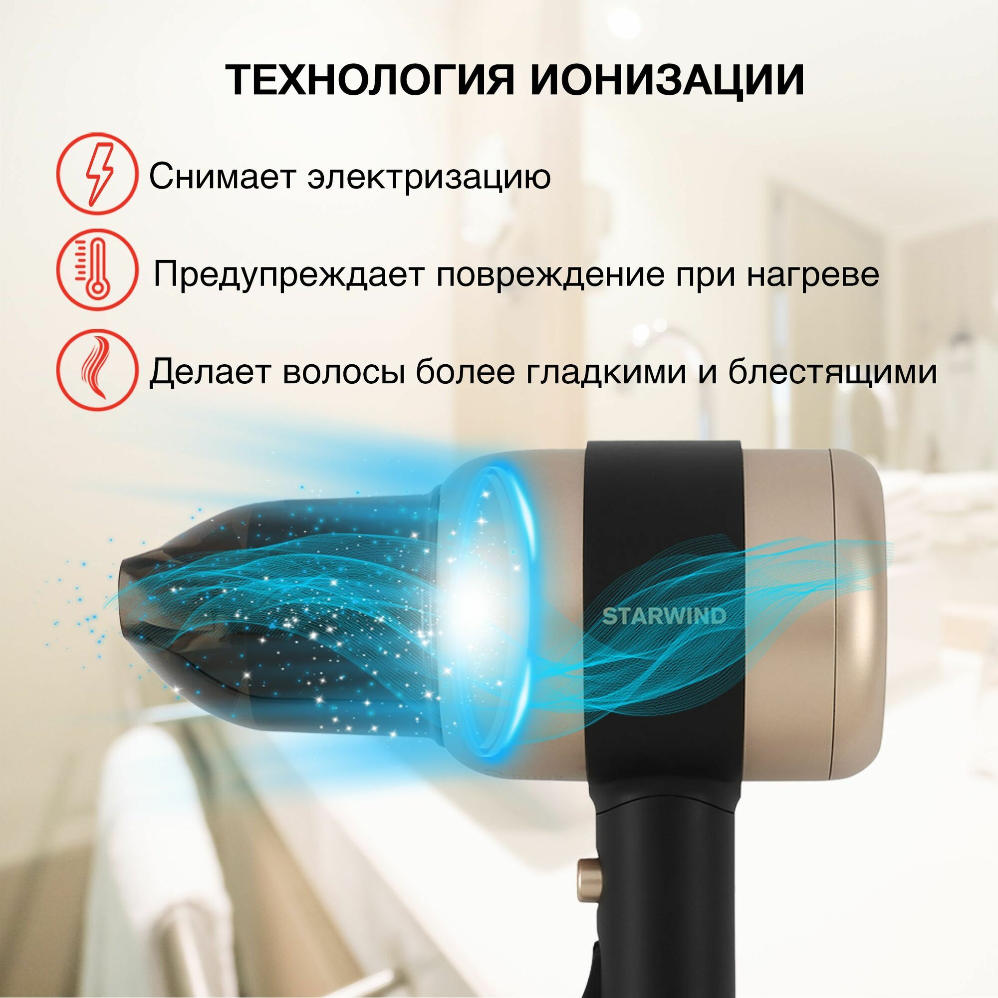 Фен StarWind SHD 7072, 1800Вт, черный/золотистый интересное: