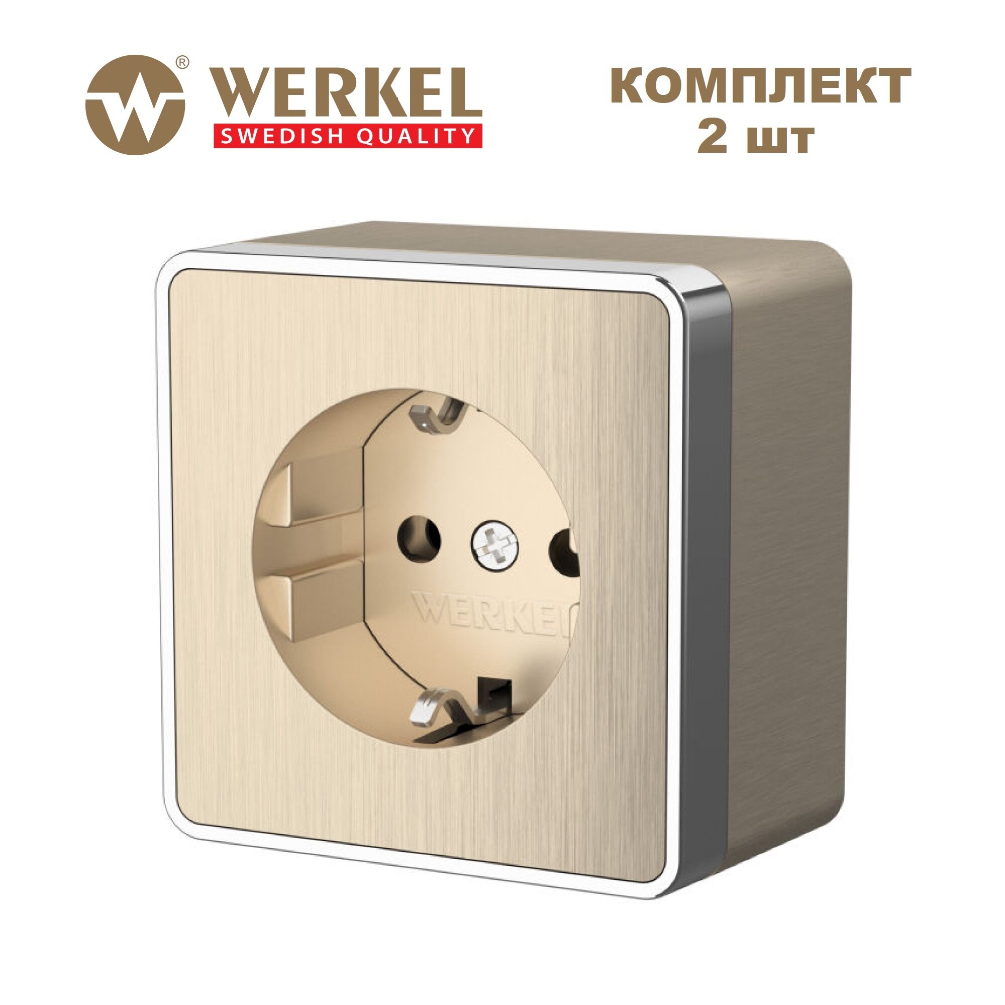 Купить Розетка с заземлением накладная Werkel Gallant W5071010, цвет шампань рифленый - комплект 2 шт.
