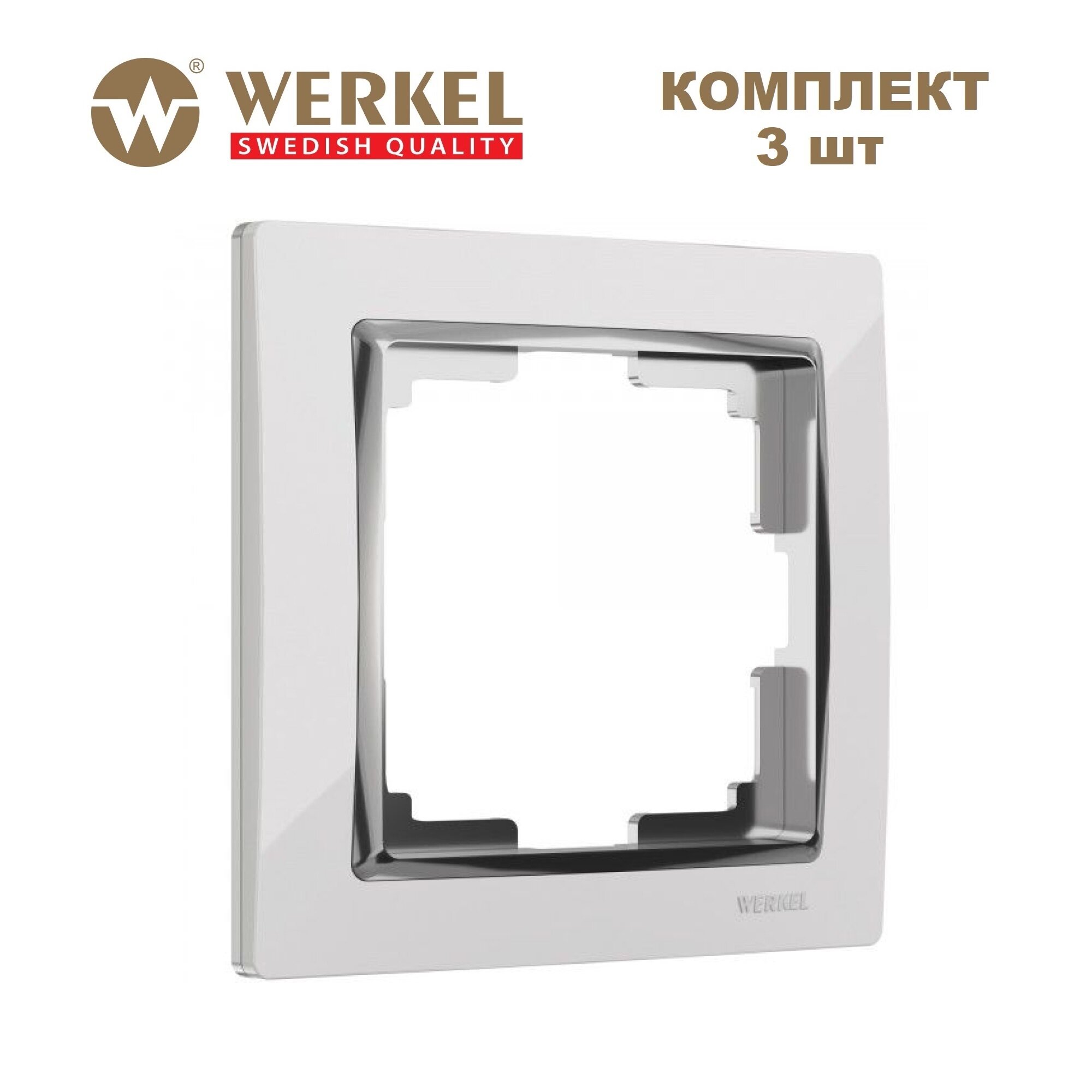 Купить Рамка на 1 пост Werkel Snabb W0011901 , цвет белый / хром - комплект 3 шт.