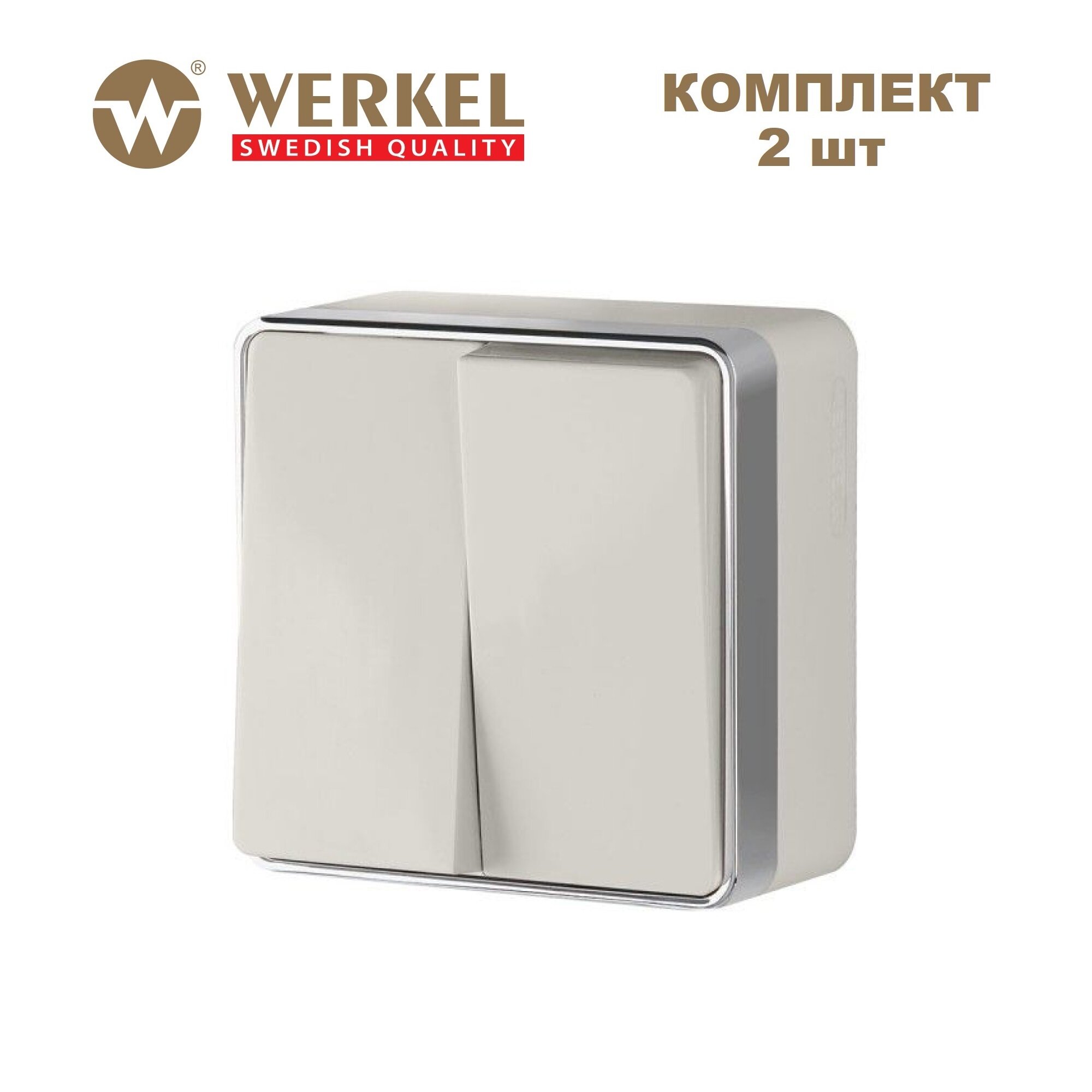 Купить Накладной выключатель двухклавишный Werkel Gallant W5020003 слоновая кость, IP20 - комплект 2 шт.
