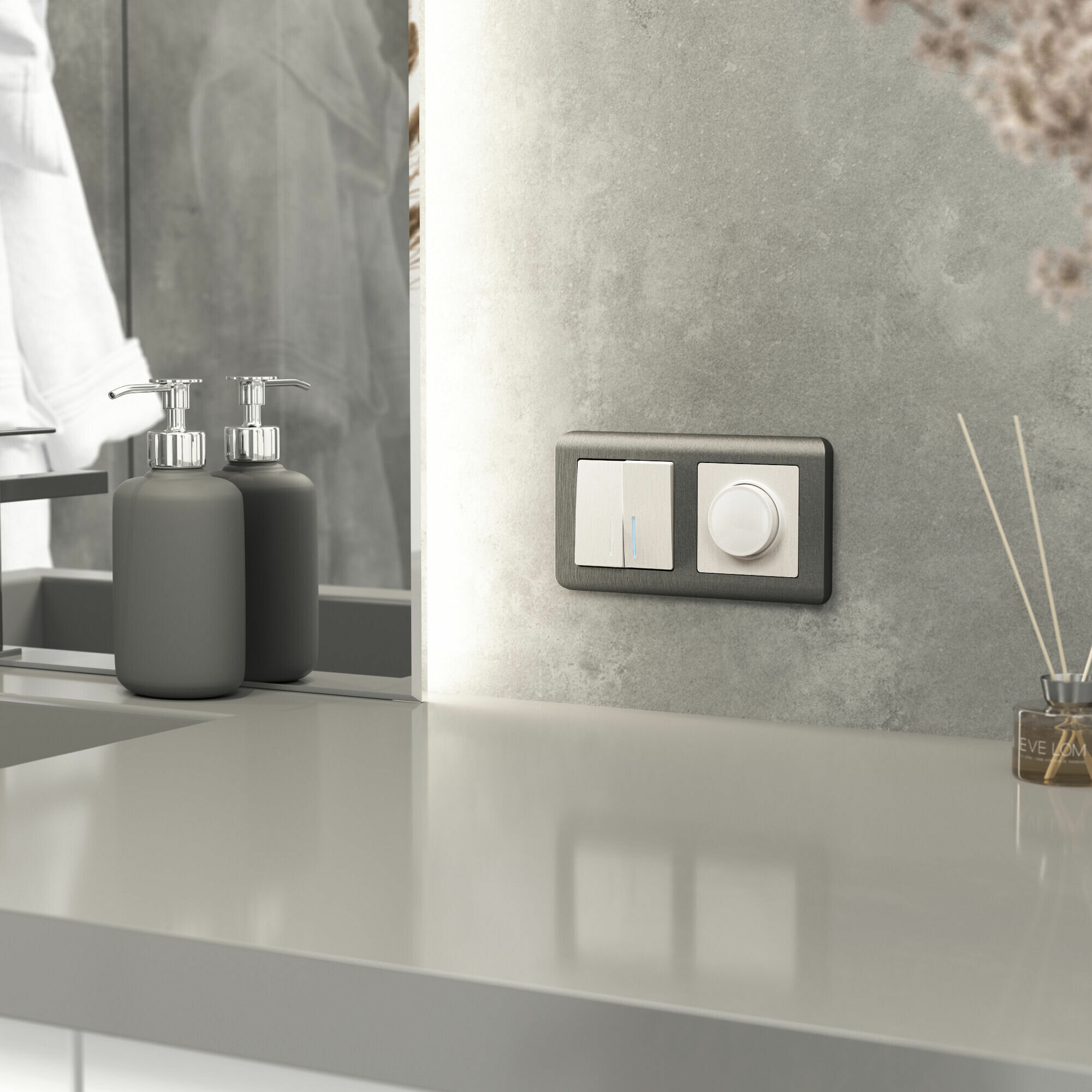 W1120164/ Выключатель двухклавишный с подсветкой (графит матовый)