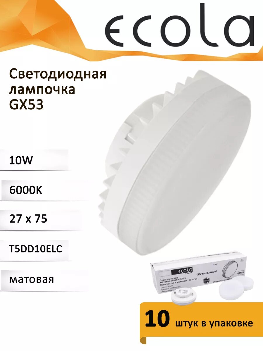Лампа светодиодная Ecola T5DD10ELC, GX53, 10 Вт, 6000 К 10шт