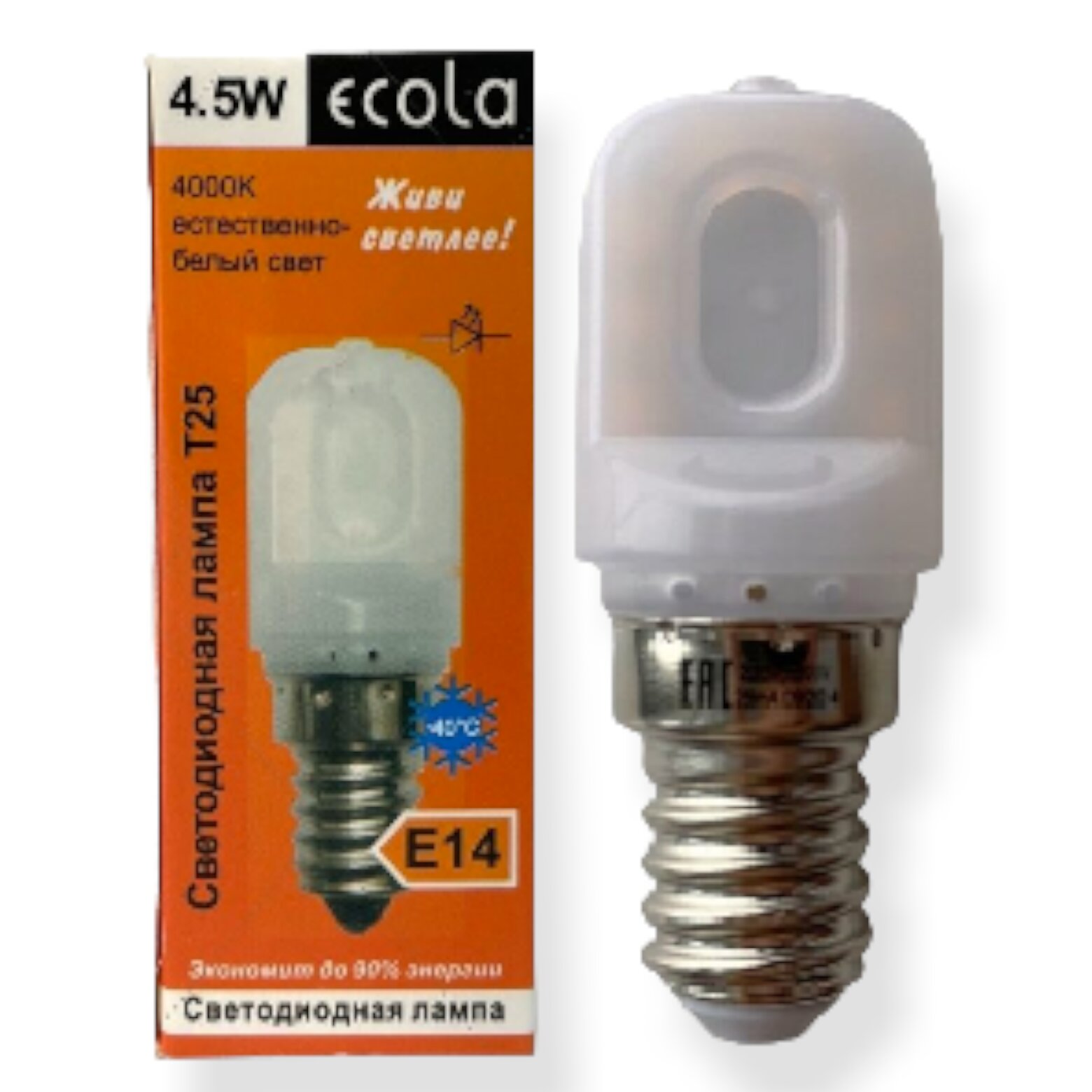 Лампочка ECOLA B4UV45ELC T25 LED MICRO E14, 4,5 Вт, для холодильников и швейных машин, белый