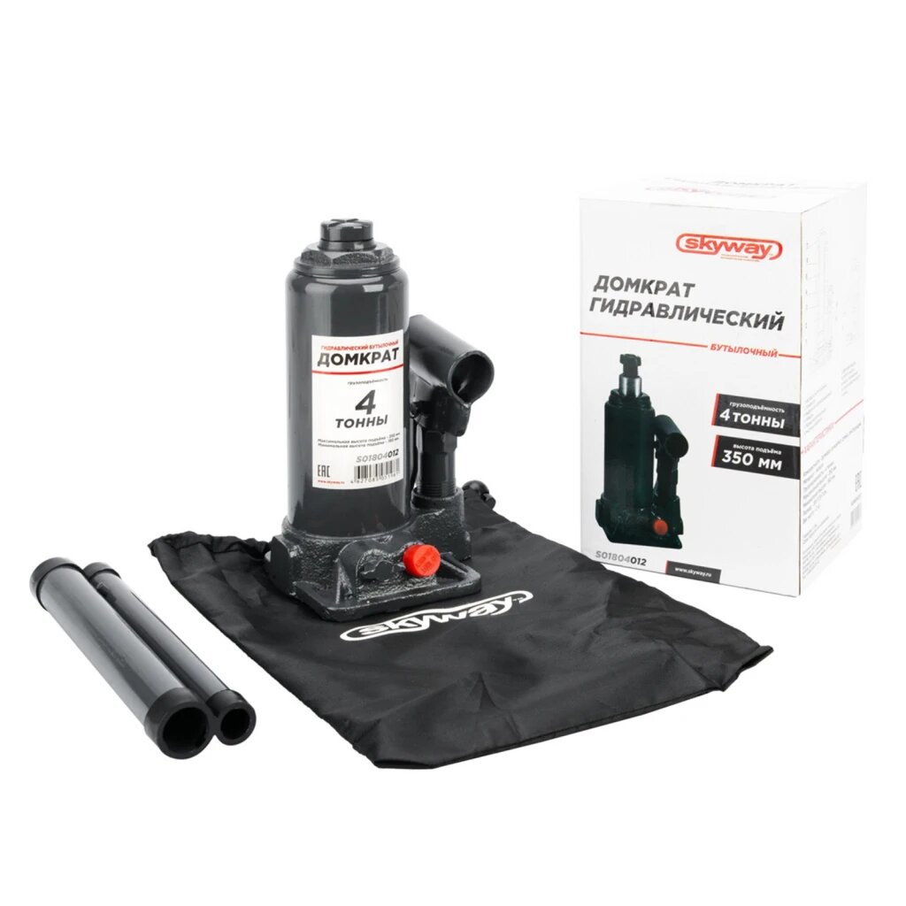Домкрат гидравлический 4 т 180-350 мм с клапаном в коробке + сумка Skyway SKYWAY S01804012 | цена за 1 шт