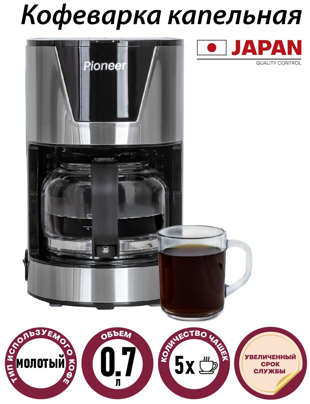 "Кофеварка капельная Pioneer объем до 5 чашек, американо, эспрессо, ристретто, функция Подогрев, функция Антикапля, объем 0,7л, 550 Вт"