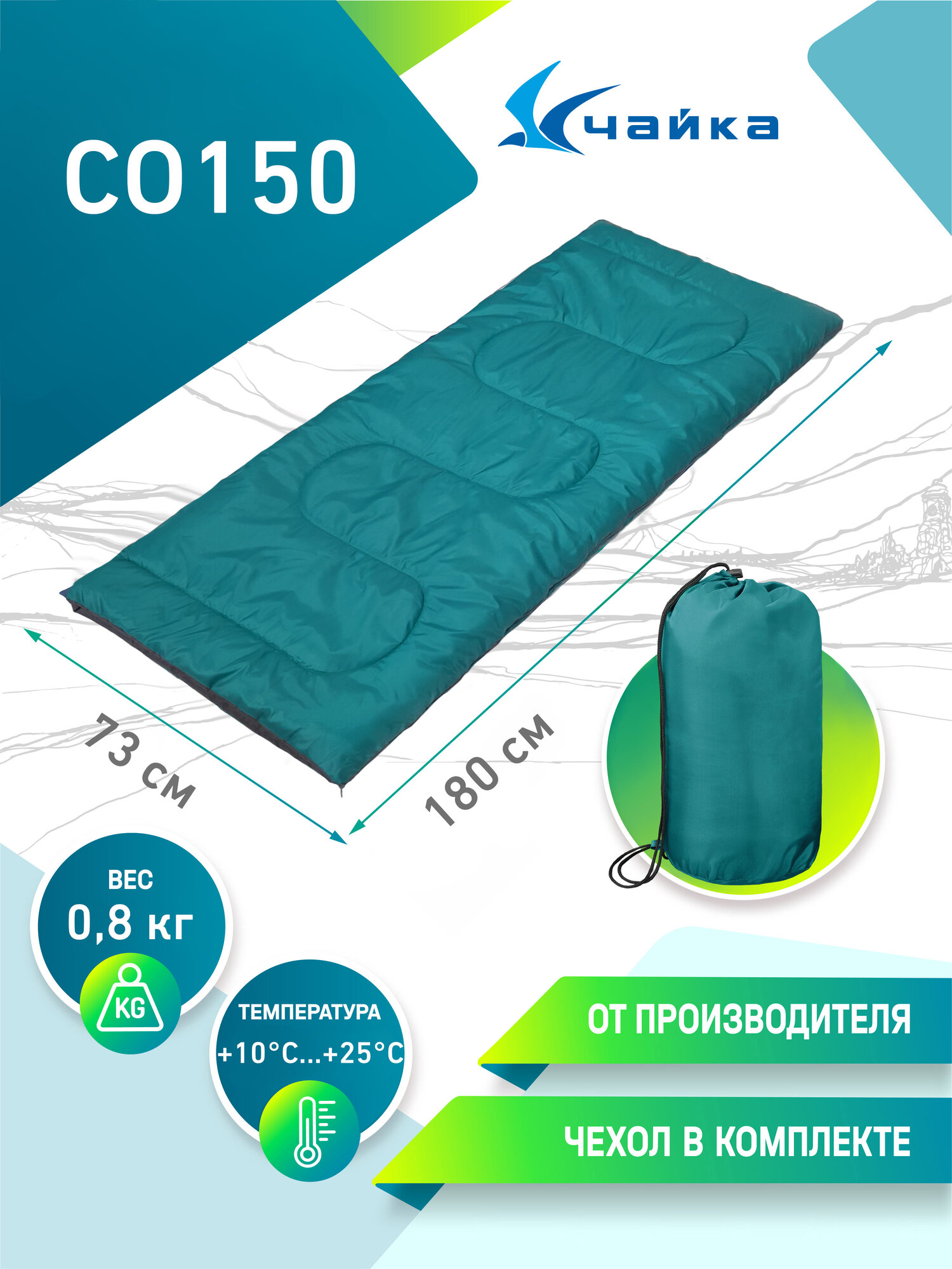 Спальный мешок Швейный холдинг Чайка "СО150", туристический, термофайбер, 180х73 см