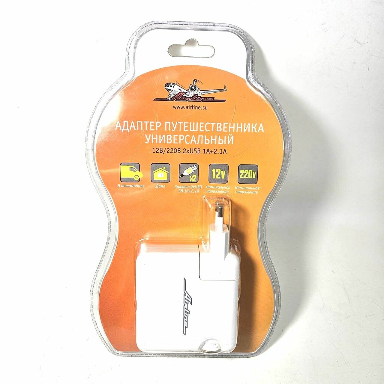 AIRLINE ACHT05 Адаптер путешественника универсальный 12В/220В 2хUSB 1A+2.1A (ACH-T-05)