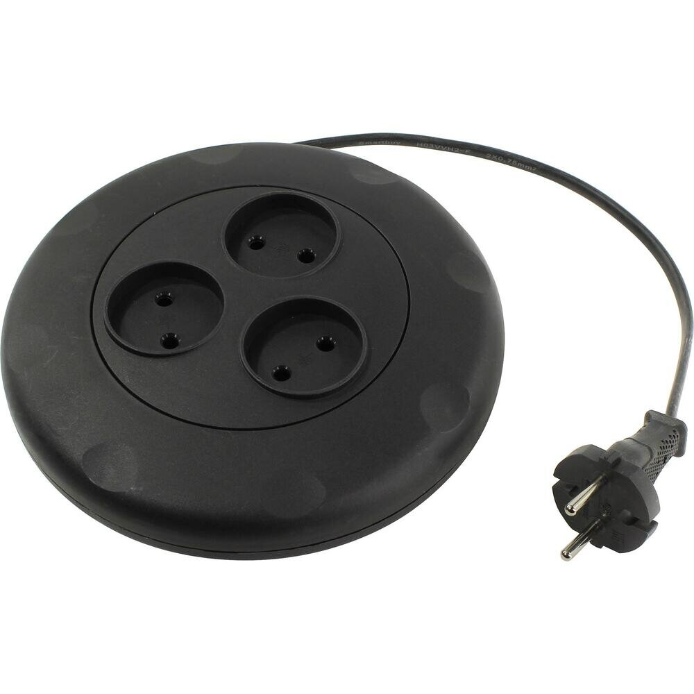 Удлинитель 3 гнезда 3 метра 10А/2,2кВт, б/з, круглый, черный (SBE-10-3-03-B)