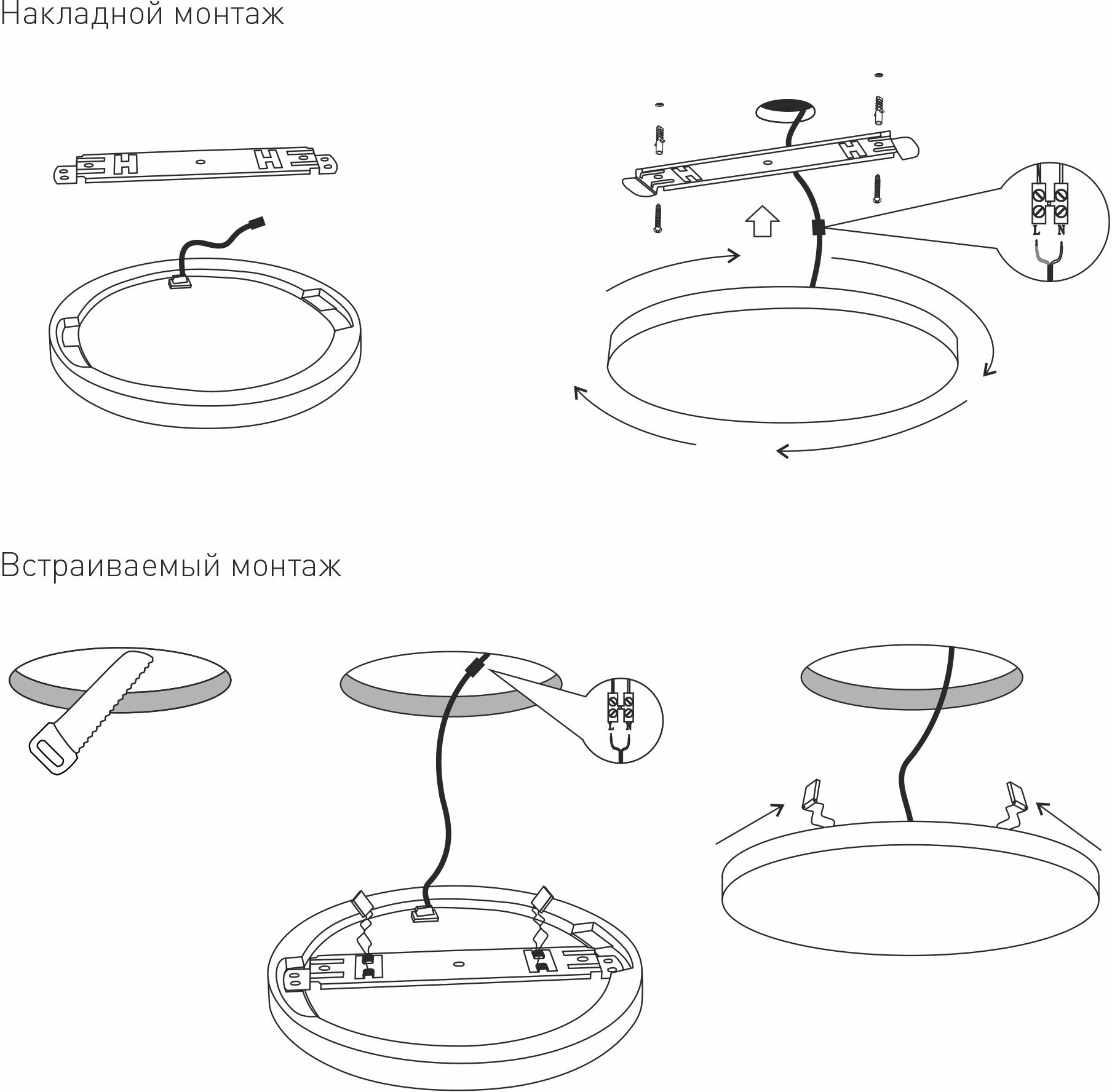 | Плюсы: | Легко монтируются на любую поверхность, снаружи только провода для подключения. Светят ярко, не мерцают. |