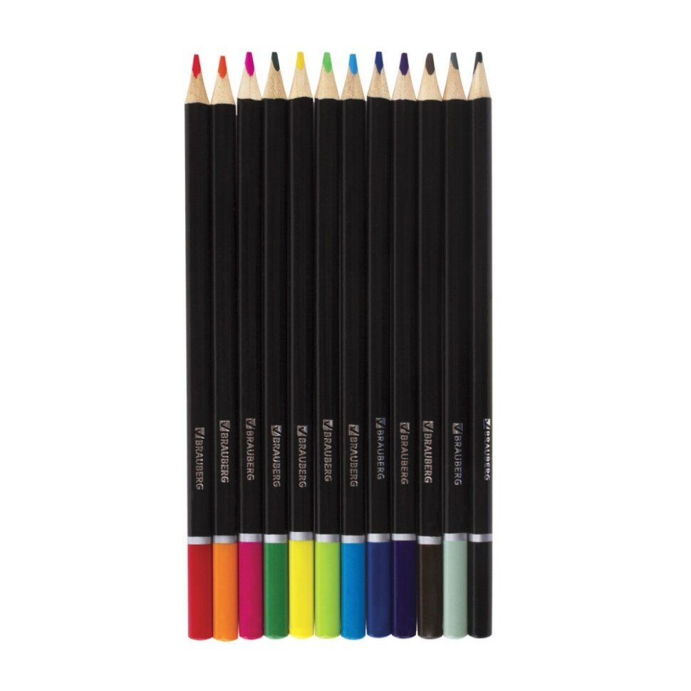 Карандаши цветные BRAUBERG «Artist line», 12 цветов, трехгранные, черный корпус, высшее качество, 180596. 180596